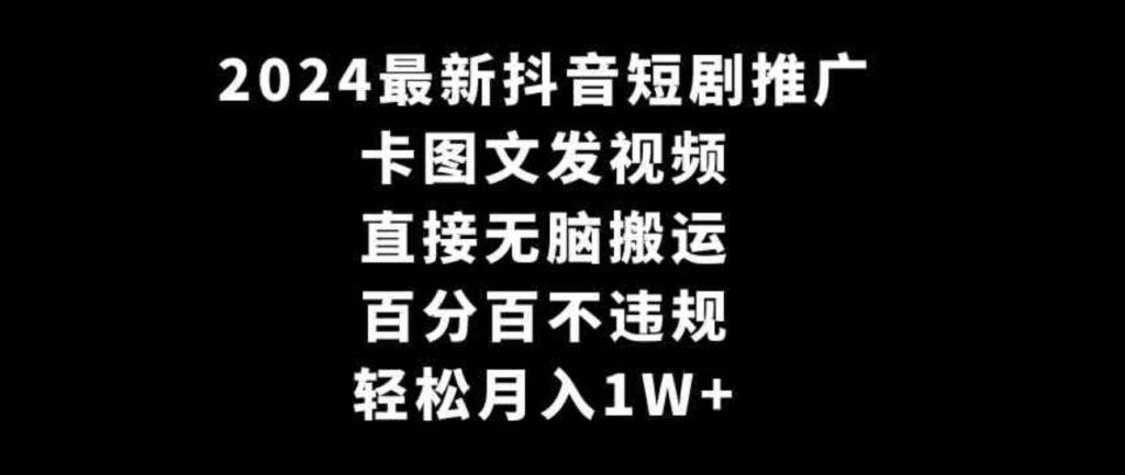 2024最新抖音短剧推广,卡图文发视频,直接无脑搬,百分百不违规,轻松月入1W+