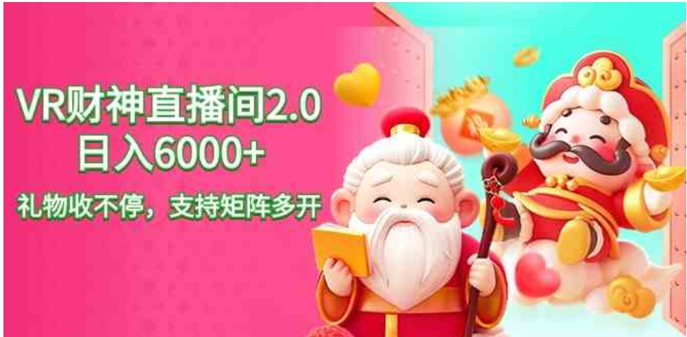 今天给大家带来2024年最新的抖音VR财神无人直播项目,支持矩阵多开玩法
