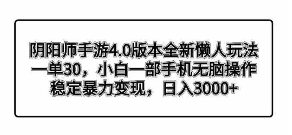 今天给带来的项目是“阴阳师手游4.0版本全新懒人玩法,一单30,小白一部手机无脑操作,稳定暴力变现,日入3000+轻轻松松!”这是一种我实操稳定变现的玩法,也是大佬的玩法,想必大家都做过短视频游戏变现,那种不仅耗费人力,财力,精力的视频,我实操的这个玩法不用花费很多时间,只需要用到我提供的第三方平台去放单变现,项目合法合规!直接小白无脑操作,不需要购买配音软件和费力剪辑视频,暴力变现出单!下面是教程和资料!