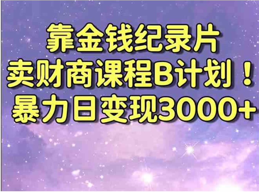 今天要跟大家分享的是【财经纪录片联合财商课程的变现策略!暴力日变现3000+!!喂饭级别教学!】