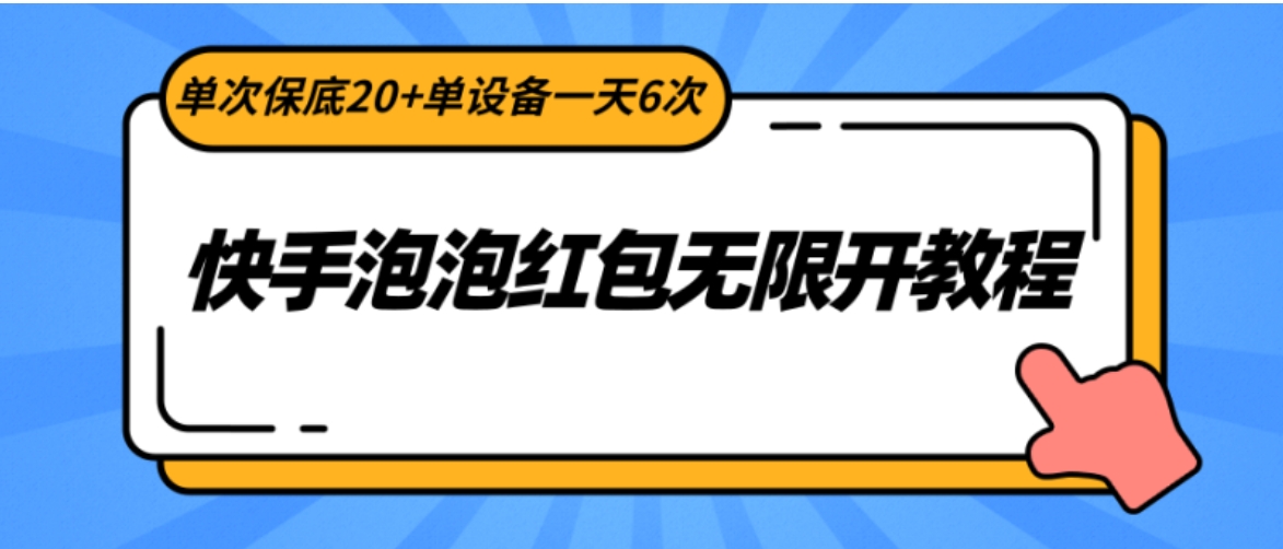 快手泡泡红包无限开教程,每次最低保底收益20+,单设备每天可进行6次操作。