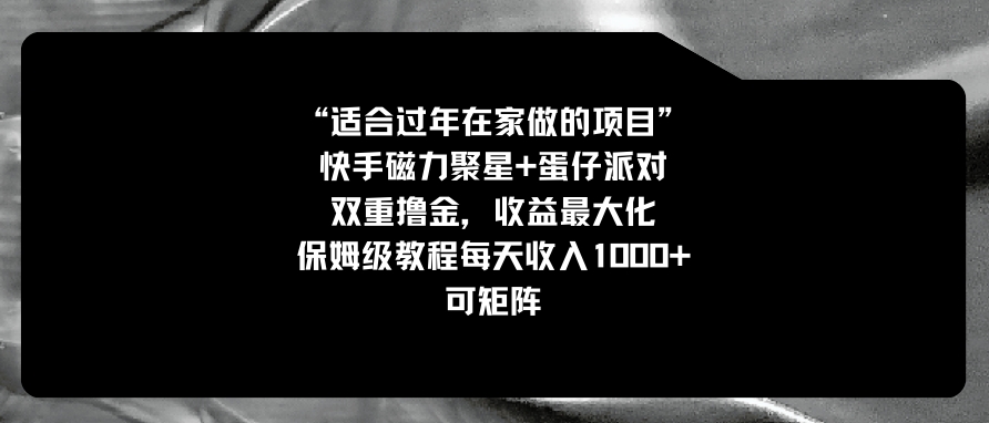适合过年在家做的项目,快手磁力+蛋仔派对,双重撸金,收益最大化 ,保姆级教程, 每天收入1000+,可矩阵