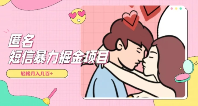 匿名短信是一个潜力巨大的长期盈利项目,通常用于向心仪的人传达感情或者开玩笑取乐(主要集中在感情领域)。目前该项目并不为人知,但只要我们用心经营,每月轻松赚取几千元的零花钱问题不大!