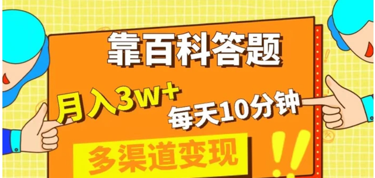 今天给大家带来的项目是《靠百科答题,每天10分钟,5天千粉,多渠道变现,轻松月入3W+ 》。