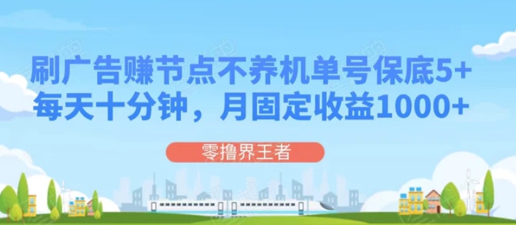 如果你想了解如何通过刷广告获得稳定收益,并且不需要任何养机操作来获取固定的收益结算方式,本课程将为你提供相关的经验和建议。除了固定收益外,我们还将介绍几种增加收益的方法,供大家根据自身情况选择。通过这些方法,你的月固定收益有望达到1000+。