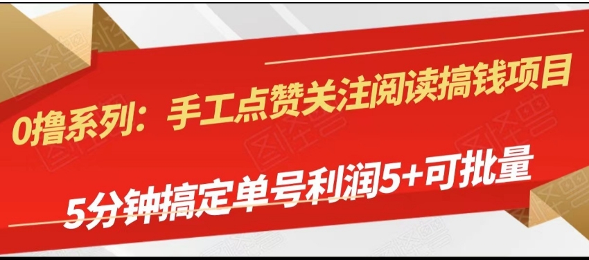手工点赞关注阅读搞钱项目;5分钟搞定 单号每天5+可批量