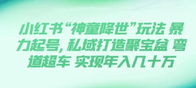 今天给大家带来一个全网首发的项目《小红书“神童降世”玩法,暴利起号,私域打造聚宝盆,弯道超车,0基础玩转育婴法则,实现年入几十万》,每天只需要花费两个小时,项目操作简单,只要你有执行力,按照流程操作小白也可以快速上手。多种变现方式,课程资料变现、相关产品变现、打造个人IP收徒变现。
