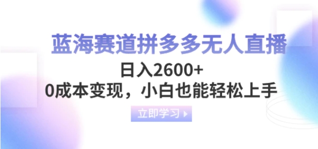 大家好,说起拼多多,可能大家印象比较深的就是东西很便宜,买东西很划算。最近几年由于抖音、快手直播带货的兴起,对淘宝、拼多多这些传统的电商带货平台的冲击比较大。在激烈竞争下,这些平台也逐渐开始发展直播赛道,并且给予新人有很大的流量扶持,特别是拼多多,这个冷门赛道目前做的人比较少,正处于项目红利期。并且它的流量要比抖音快手更加精准,转化率超高。最主要的是无门槛,不需要保证金,不用养号,0粉可以直接带货,平台管控不是很严,以前在抖音上做过无人直播,方法照搬过来同样适用。我们今天要讲的就是其中一种最简单的手机无人直播,手机放音频就可以,小白也能轻松上手。经过实操测试这种方式带货,日入2600+不是问题。