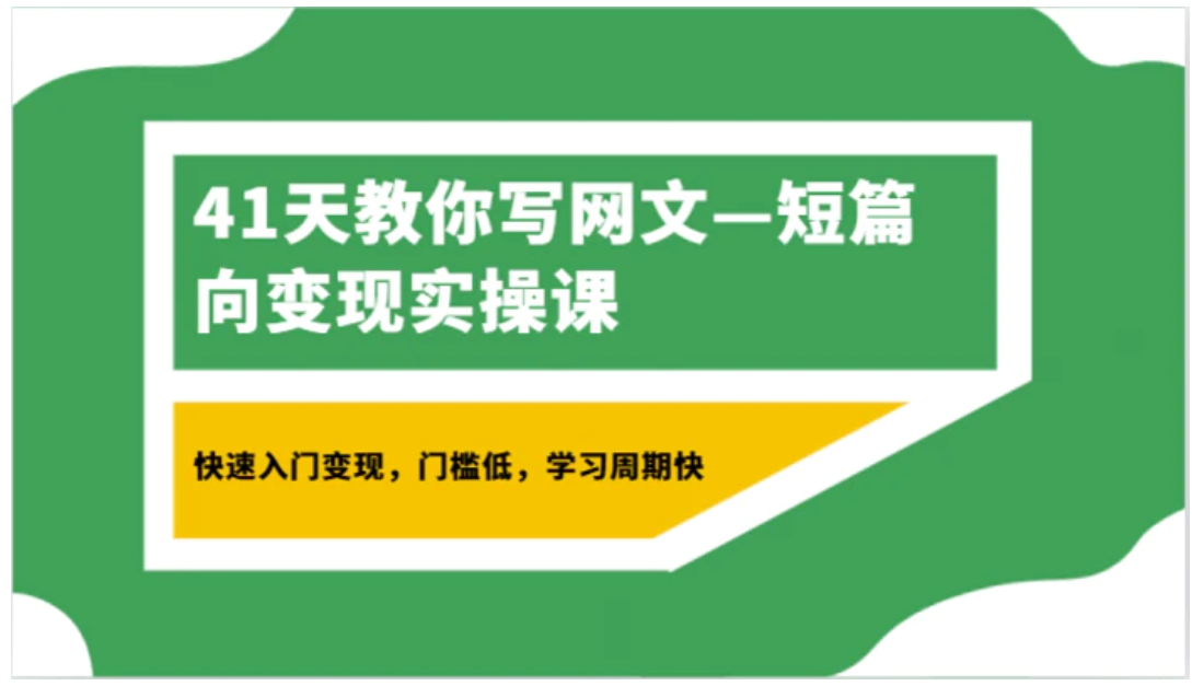 41天教你写网文—短篇向变现实操课。教你写出一个具有商业价值的故事,教学内容贴近当下市场,快速入门变现,门槛低,学习周期快。