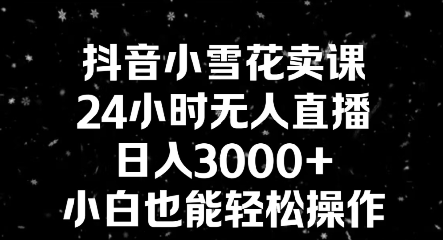 今天给大家带来一个《抖音小雪花卖课,24小时无人直播,日入3000+ 小白也能轻松操作》全新玩法。