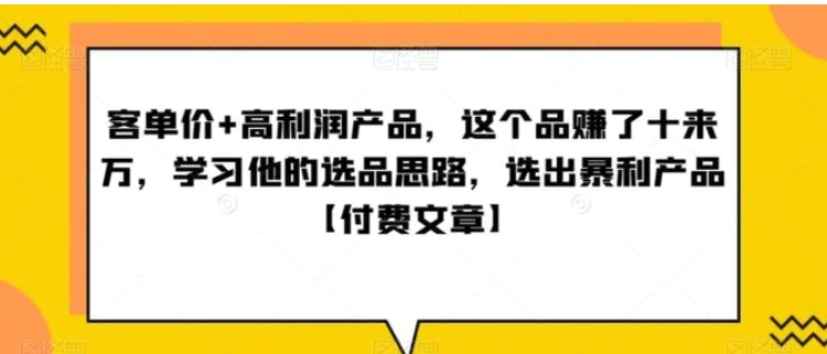 单客价+高利润产品,这个品了赚十来万,习学他选的品思路,出选暴产利品【付费文章】财仔(本人)1年前发布关注私信03304385 前言 超高价 自己做过的产品, 一个单品赚了十来万! 根据产品, 分析清楚这样的选品思路, 你会发现像这样的还算暴利的产品非常多。 单客价+高利润产品,这个品了赚十来万,习学他选的品思路,出选暴产利品【付费文章】此内容为付费资源,请付费后查看¥5钻石会员免费永久会员免费立即购买您当前未登录!建议登陆后购买,可保存购买订单付费资源© 版权声明文章版权归作者所有,未经允许请勿转载。THE END综合教程# 综合教程 喜欢就支持一下吧点赞385 分享QQ空间微博QQ好友海报分享复制链接收藏