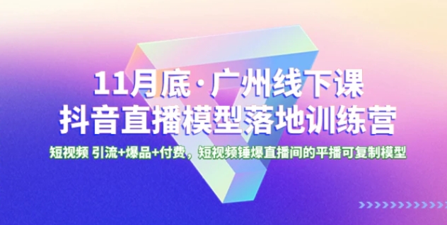 11月底·广州线下课抖音直播模型落地特训营,短视频 引流+爆品+付费,短视频锤爆直播间的平播可复制模型