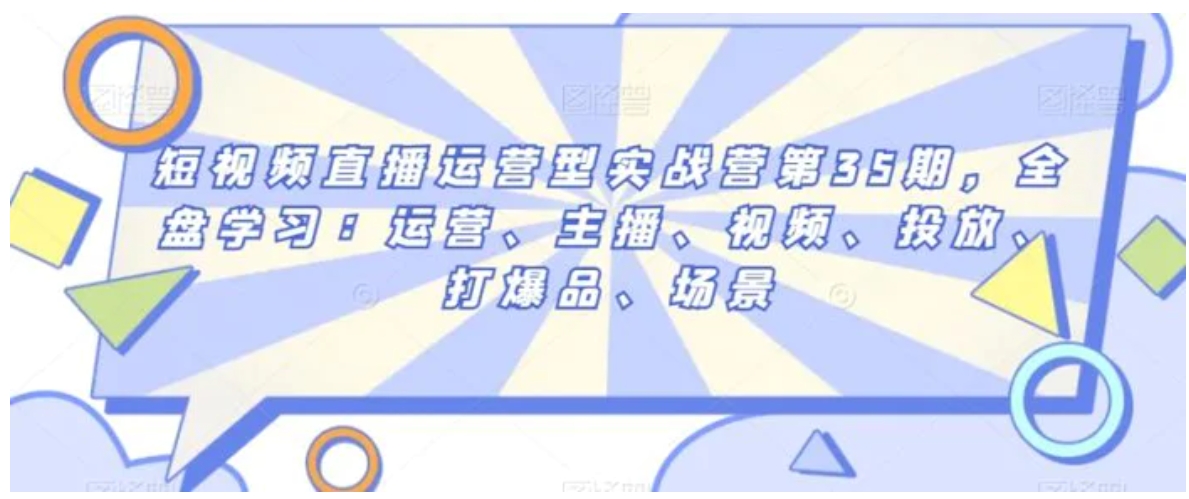 本期短视频直播运营型实战营第35期课程涵盖了运营、主播、视频、投放、打爆品、场景等重要内容。通过学习,你将了解到流量的底层逻辑、如何多维建号、平台核心竞争数据、直播间启动策略、停留数据优化等关键知识。同时,你还将学习如何成为一名运营型主播,包括核心能力的培养、直播间内容的设计、快速吸引观众和数据运营能力的提升等。无论你是初学者还是有经验的百万主播,本期课程都能帮助你提升运营水平。