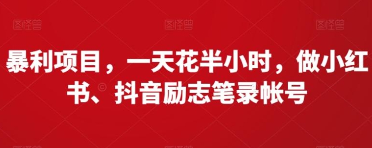 今天给大家带来的《暴利项目,一天花半小时,做小红书、抖音励志笔录帐号》