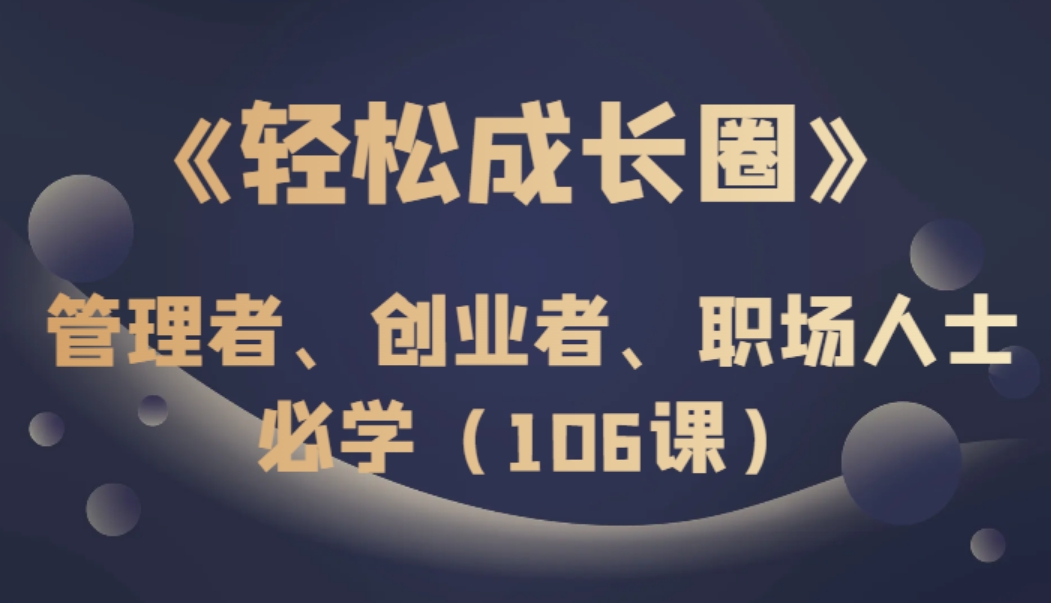 《轻松成长圈》是一门涵盖管理、创业和职场技能的课程,共有106节课。课程内容包括产品经理与产品思维、解决拖延、时间管理、前沿认知、人工智能实践、学习力突破、真正的情商、项目管理案例以及高效成长体验营等。通过这些课程,学员可以轻松地提升自己的管理能力、创业技巧和职场素质,抢占先机,成为更好的自己。