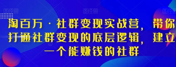 想要建立一个能够赚钱的社群吗?加入淘百万·社群变现实战营,学习如何打通社群变现的底层逻辑。这个课程不只是传授理论知识,更注重实战干货和落地技巧。通过深入剖析你社群不赚钱的原因,并解析不同社群类型及其运营核心,你将学到如何设计社群内容和活动、调动用户积极性、促进成交以及培养群主心态。另外,你还会学习社群搭建的关键要素、社群招募的核心步骤、提高社群变现能力的技巧等。加入淘百万·社群变现实战营,全方位提高你的社群运营能力,建立一个能够赚钱的社群。