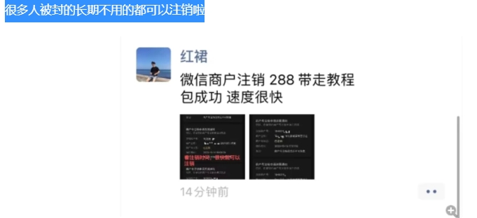 外面卖288的微信商户号注销教程来啦,超级简单方便,一分钟即可注销成功【揭秘】财仔(本人)3年前发布关注私信02797510 很多人被封的长期不用的都可以注销啦 外面卖288的微信商户号注销教程来啦,超级简单方便,一分钟即可注销成功【揭秘】此内容为付费资源,请付费后查看¥9.9钻石会员免费永久会员免费立即购买您当前未登录!建议登陆后购买,可保存购买订单付费资源© 版权声明文章版权归作者所有,未经允许请勿转载。THE END综合教程# 综合教程 喜欢就支持一下吧点赞510 分享QQ空间微博QQ好友海报分享复制链接收藏