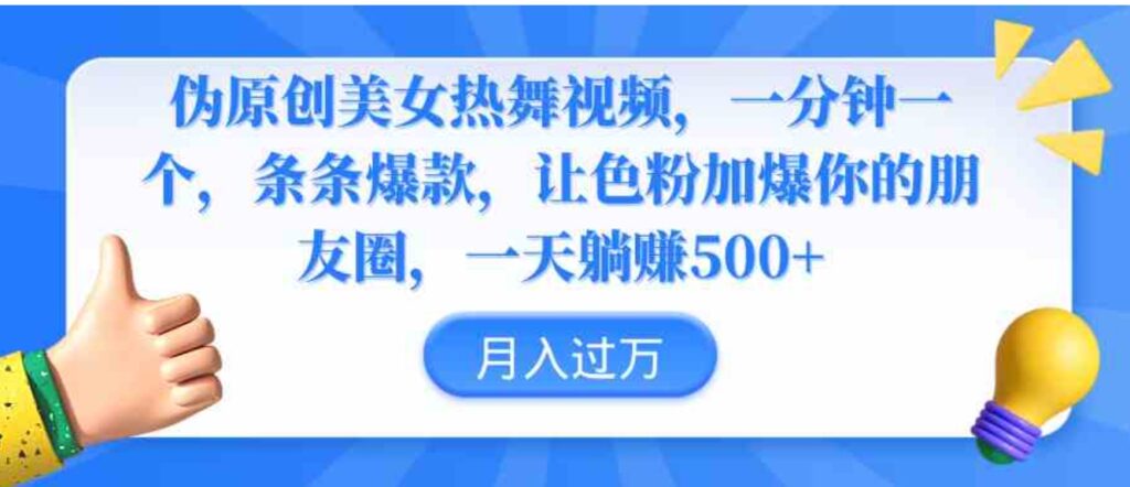 伪原创美女热舞视频,一分钟一个视频,条条爆款,让色粉加爆你的朋友圈,轻松躺赚500+