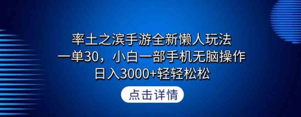 大家好,相信大家都听说过抖音游戏发行人计划,但是一般做视频的收益都低的离谱,今天给带来的项目是“率土之滨手游全新懒人玩法,一单30,小白一部手机无脑操作,日入3000+轻轻松松”,这个项目不需要去花冤枉钱也是我自己实操过的项目,只要跟着做,都能够单个视频变现3000+,通过第三方合规渠道去变现赚取差价,月入过万很轻松,一部手机即可操作,懒人或者小白轻松上手.下面是教程和准备好的全套资料。