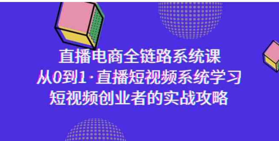 直播电商全链路系统课,从0到1·直播短视频系统学习,短视频创业者的实战攻略