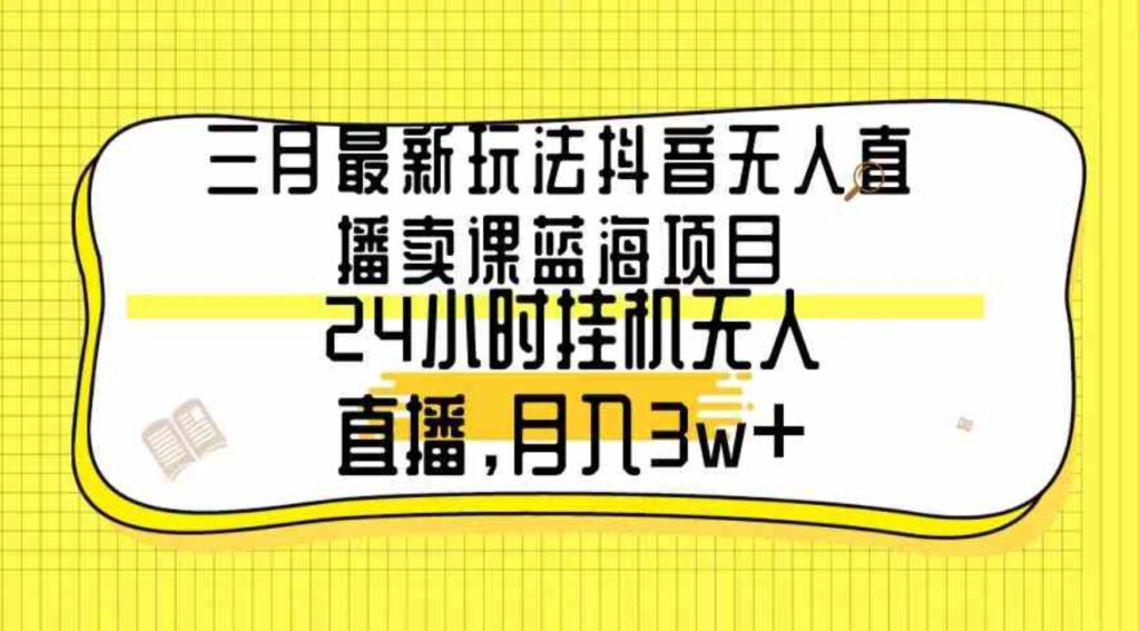今天给大家带来一个《三月最新玩法抖音无人直播卖课蓝海项目,24小时无人直播,月入3w+ 小白也能轻松操作》全新玩法。