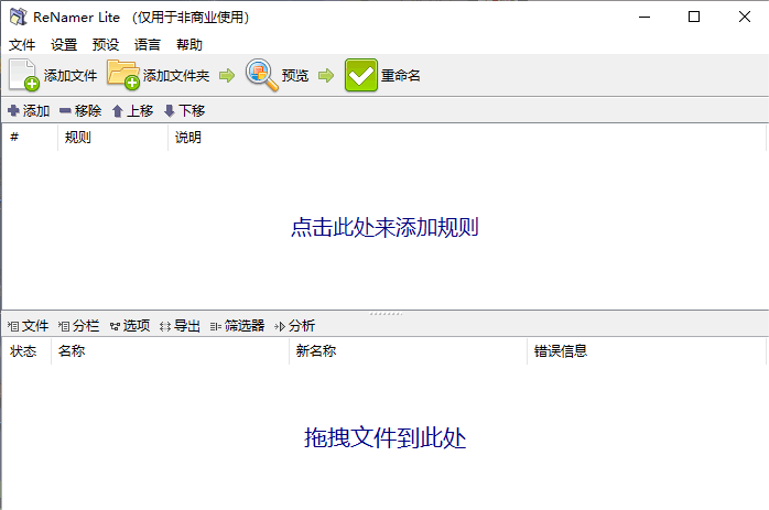 - 支持多种重命名规则:包括添加前缀、后缀、替换、删除、大小写转换等多种规则,用户可以根据自己的需求选择合适的规则。