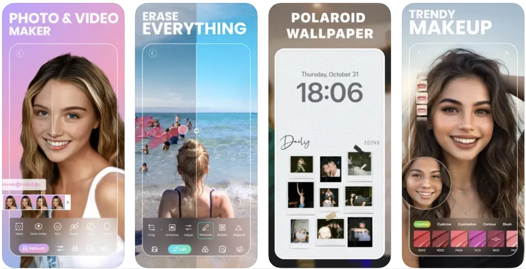 使用BeautyPlus AI照片编辑器和视频编辑器,您可以立即拍摄甜蜜的自拍照并修饰美丽的照片:去除粉刺和瑕疵,光滑皮肤,尝试换发器,美白牙齿,瘦脸和身材,尝试时尚妆容。使用动漫滤镜改造您的照片、添加贴纸、模糊照片,甚至删除和更改背景以获得艺术感。